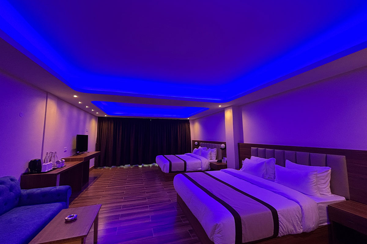 The Family Suites at Wisteria Crystal Manor offer a spacious and comfortable retreat for families, ensuring that everyone can enjoy the beauty of the Himalayas together. With two interconnected rooms, these suites provide the perfect amount of space for families or groups traveling together. Each room is designed with modern amenities to make your stay as comfortable as possible, including a cozy living area, a large flat-screen TV, and a well-appointed private bathroom.