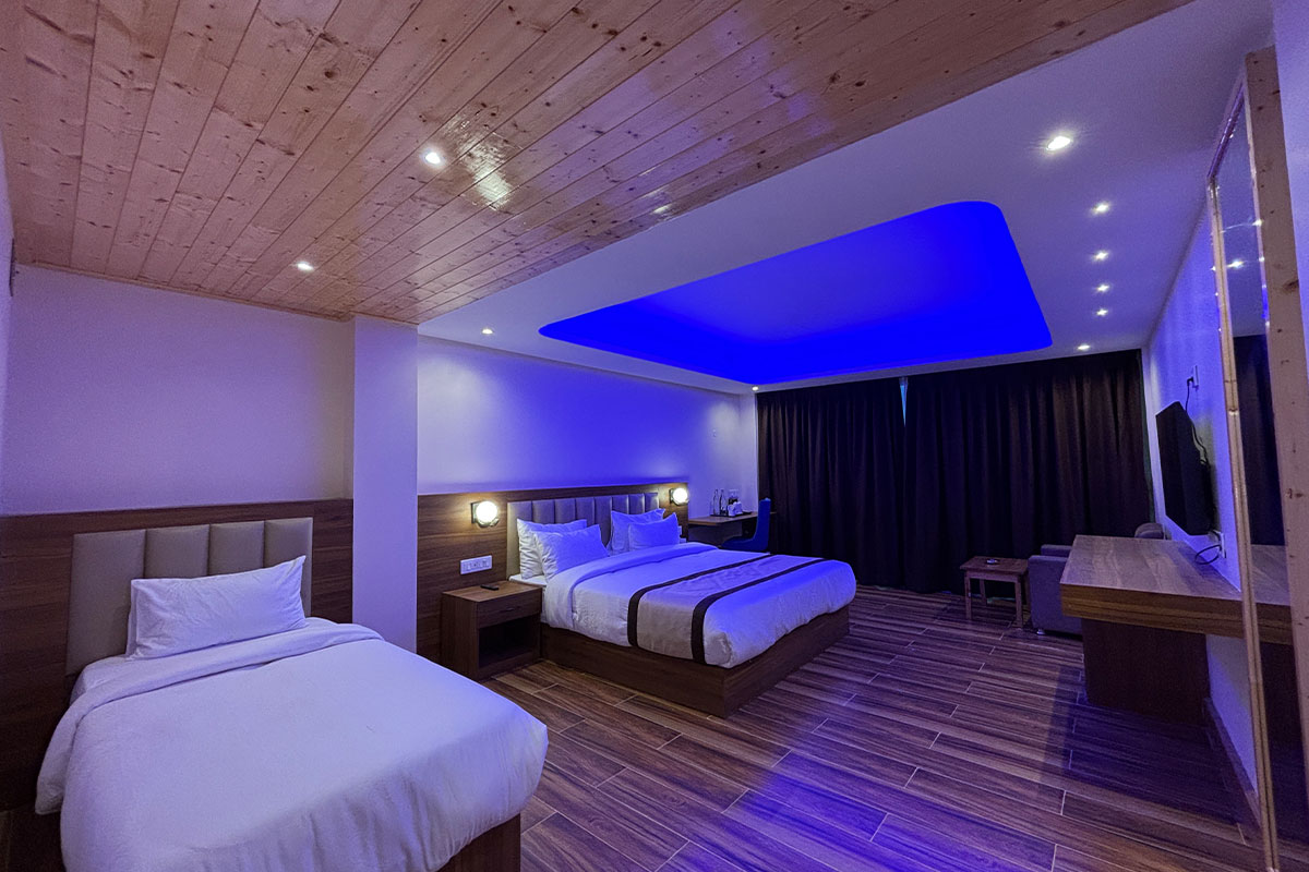 The suites are perfect for families who want to relax and reconnect in a luxurious setting. The decor is warm and inviting, with elegant touches of traditional Himalayan design, ensuring a true sense of comfort. With stunning views of the surrounding mountains and valleys, the Family Suites offer the ideal setting for spending quality time with loved ones. Enjoy all the hotel’s amenities, from the wellness center to the multi-cuisine restaurant, making your stay both luxurious and memorable.